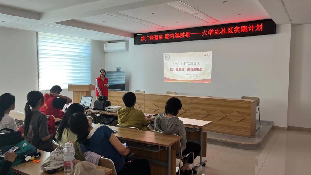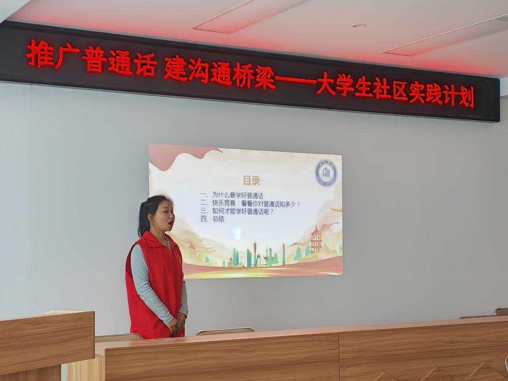 为积极推广和规范使用国家通用语言文字,增强居民的语言规范意识,提高对语言文字重要性的认识,营造良好的语言环境,5月16日,澳门网投十大信誉平台文学与新闻传播学院汉语言文学专业2022级4班团支部走进德城区广川街道小东关社区开展“推广普通话,建沟通桥梁”主题大学生社区实践活动。