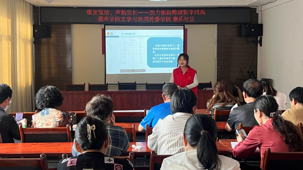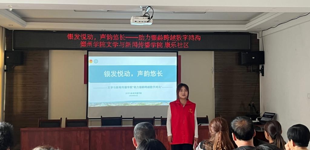 为丰富老年人的精神生活,提升老年人的记忆力、注意力和思维能力,教会老年人用耳聆听网络书籍、节目等资源,5月14日,文学与新闻传播学院走进康乐社区开展"银发悦动,声韵悠长"助力银龄跨越数字鸿沟主题社会实践活动。