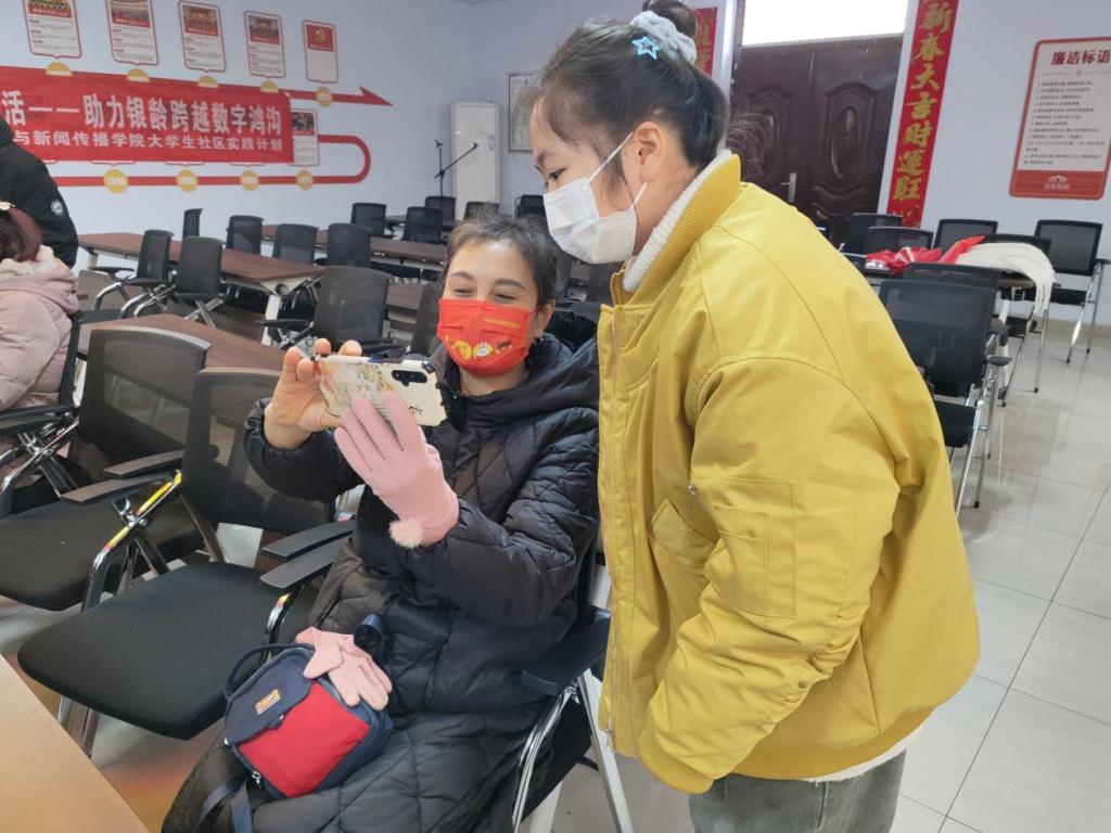 为深入贯彻落实党的二十大精神和习近平总书记对加快建设老年友好型社会的重要指示要求,更好地助力老年人跨越数字鸿沟,实现大学生服务社区,社区锻炼大学生的双赢互动、双向奔赴,12月15日,文学与新闻传播学院摄影摄像协会团支部、基层团支部走进明湖社区开展“推广摄影艺术,共享智慧生活”大学生社区实践活动。