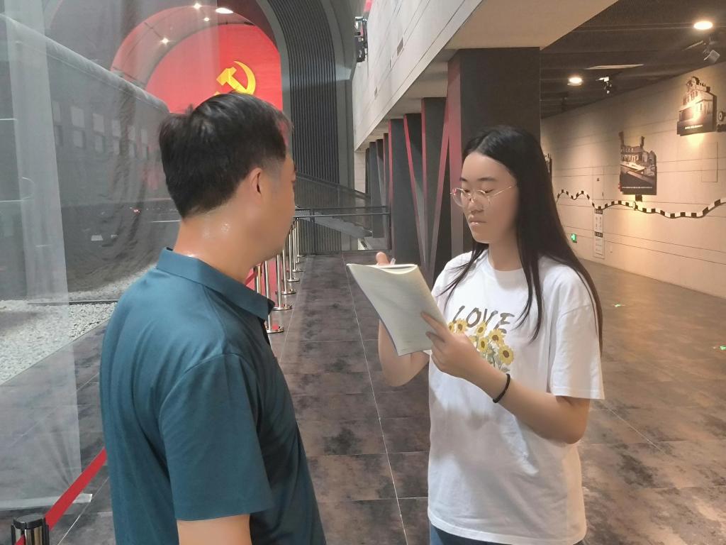 在活动中,实践队员认真仔细地观看了有关铁道游击队事迹的影视资料,参观了多个历史展厅,聆听了相关的网络宣讲,听到这些艰苦奋斗、无私奉献的事迹后,实践队员泪撒衣襟,对铁道游击队的抗日斗争和突出贡献有了更深刻的认识,在活动记录本上写下了一些重要的历史史实。之后,实践队员采访了前来参观的游客,询问他们的游览感悟、对党史学习教育的看法和建议,并做好记录。最后,在铁道游击队纪念馆出口处,实践队员在电子签名板上为铁道游击队的英雄们送上了最诚挚的敬意。这次活动在加强党史教育、传承优良品质的同时,丰富了实践队员的日常生活,践行了“不忘初心、牢记使命”的奋斗精神。