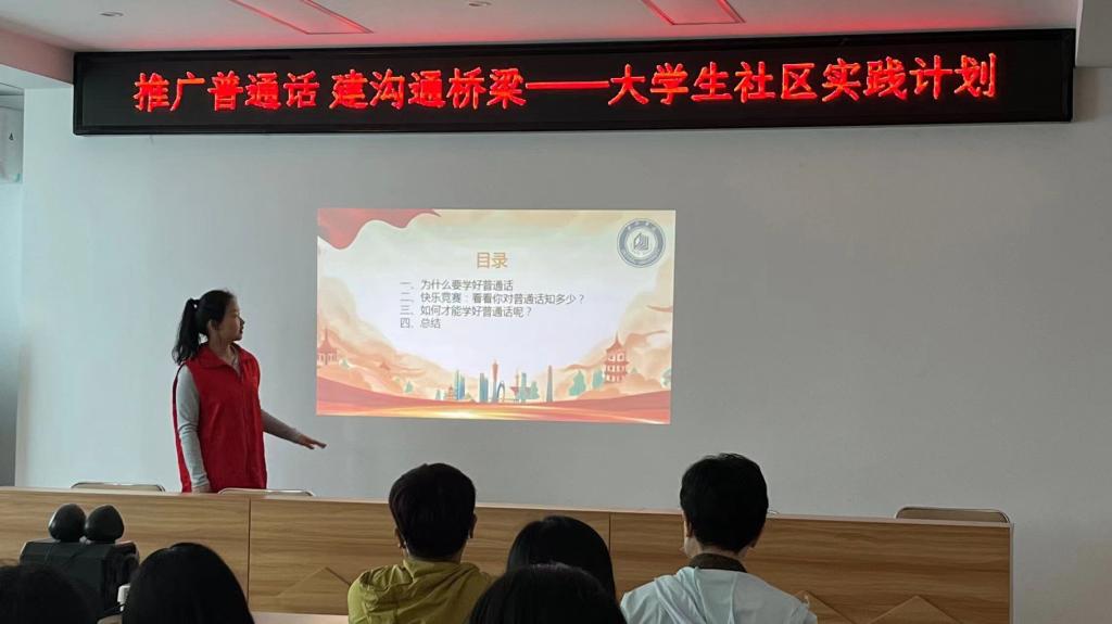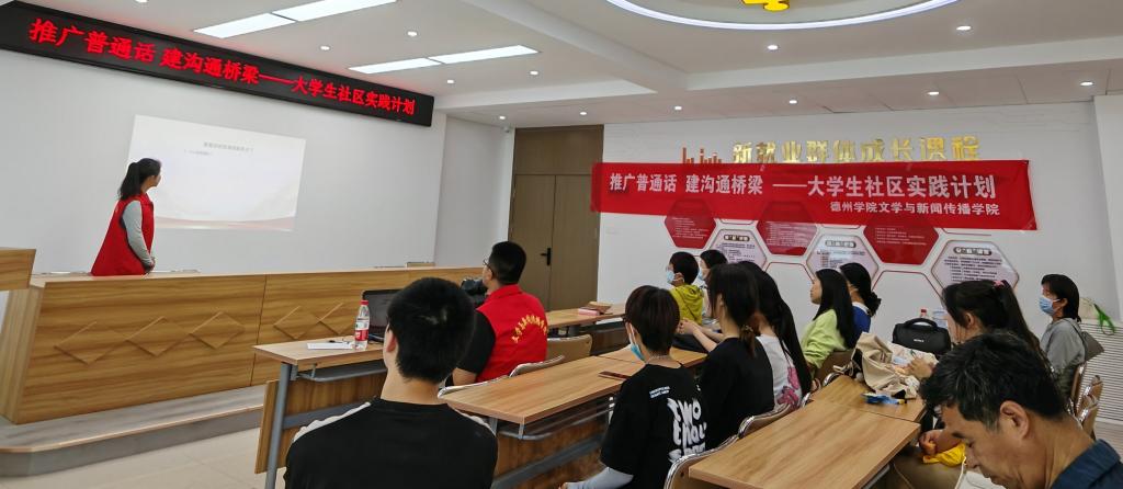 为积极推广和规范使用国家通用语言文字,增强居民的语言规范意识,提高对语言文字重要性的认识,营造良好的语言环境,5月16日,澳门网投十大信誉平台文学与新闻传播学院汉语言文学专业2022级4班团支部走进德城区广川街道小东关社区开展“推广普通话,建沟通桥梁”主题大学生社区实践活动。