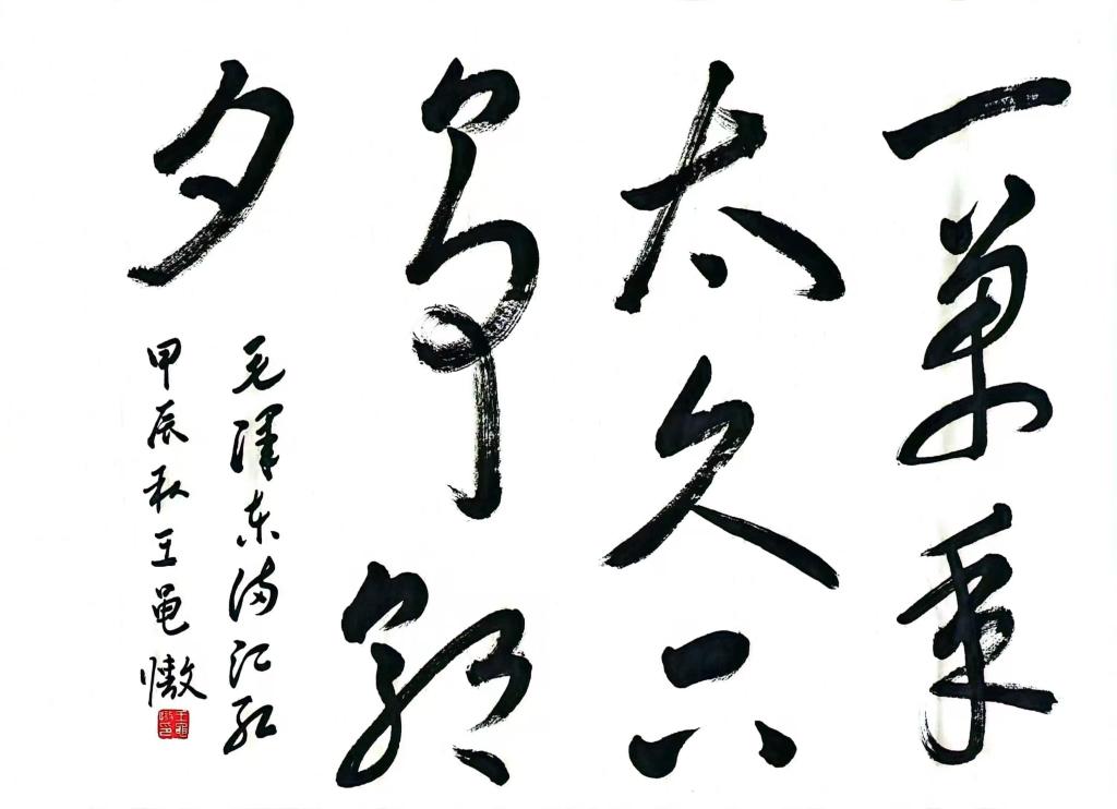 一纸墨香,纸短情长。王黾慠同学书写的“热烈庆祝中华人民共和国成立75周年”表达了文院学子为祖国母亲庆生的满心欢喜;书写的“团结凝聚力量,奋斗铸就伟业”表达了文院学子团结友爱、共同进步的班级凝聚力;书写的“一万年太久,只争朝夕”表达了文院学子分秒必争、追求卓越的精神面貌。