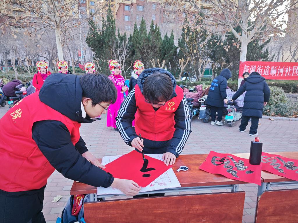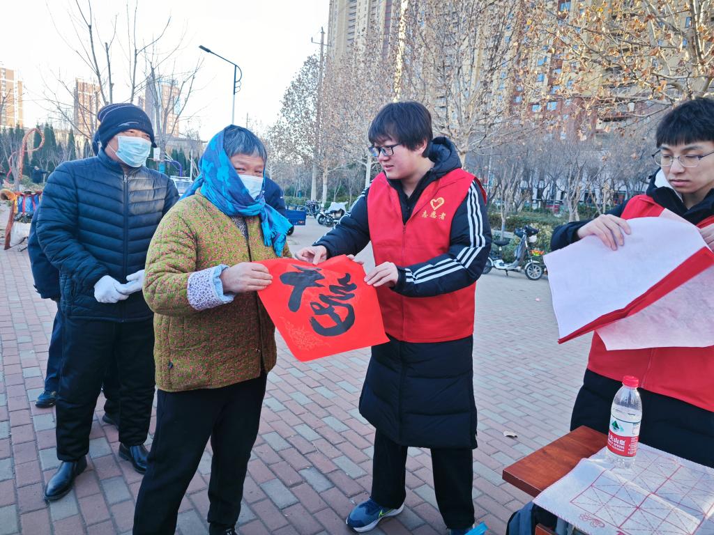 活动开始前,志愿者们便穿戴好志愿马甲协助社区工作人员布置活动场地、协助活动开展。本次活动通过现场撰写“福”字这一传统而富有文化意蕴的方式,为社区居民带来一场别开生面的书法展示,旨在弘扬中华优秀传统文化,向周边社区居民普及书法知识。同时让每一位参与者都能感受到书法艺术的独特魅力,帮助社区建设社区文化,提升居民幸福感。志愿者们还将本次所撰写的“福”字免费赠于社区居民,展示了文院学子深厚的笔力功底,获得了社区居民们的高度认可。