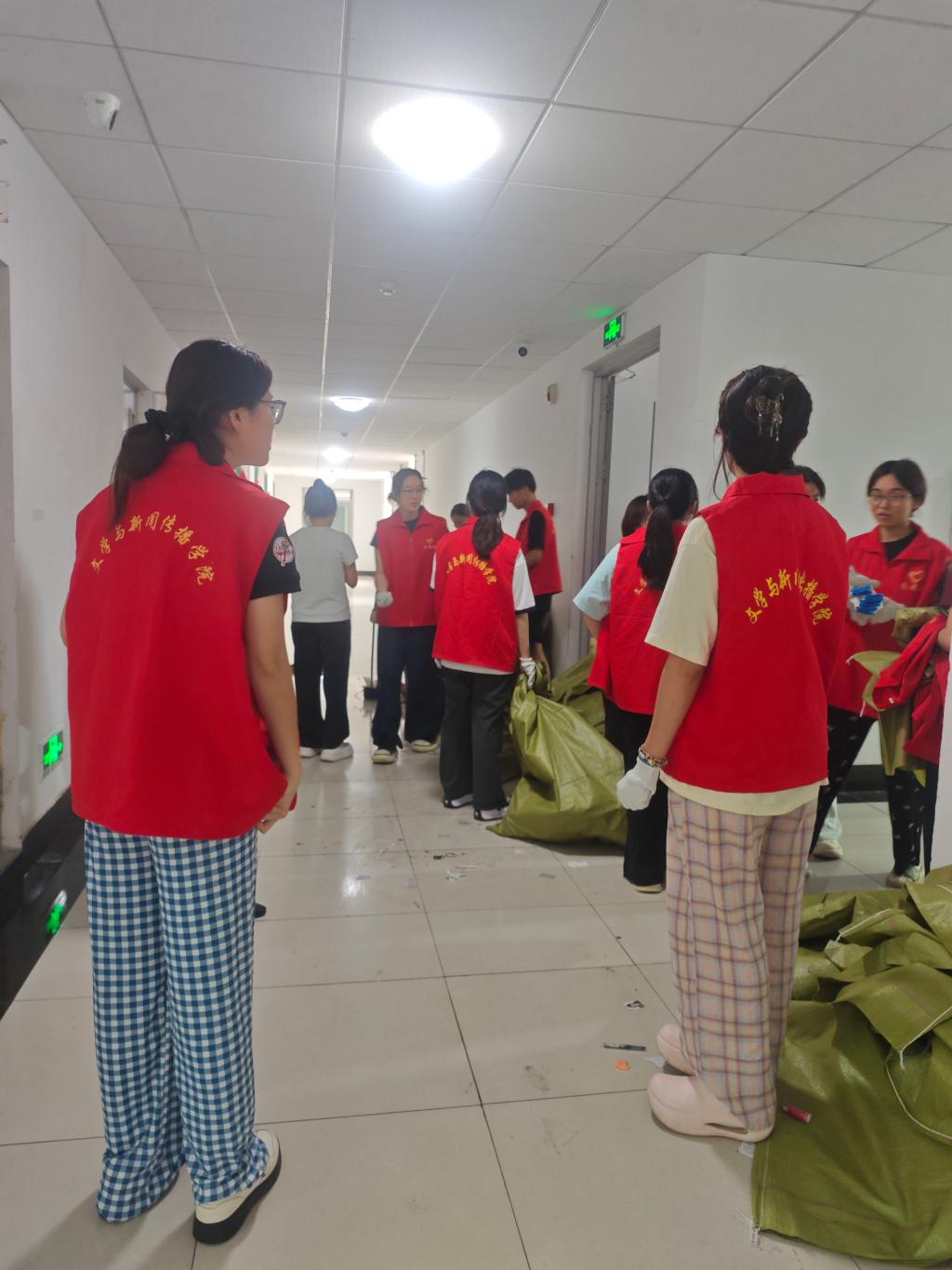 文学院组织在校学生党员、学生干部等主动担当,成立先锋志愿服务队,承担公寓部分公共区域垃圾清扫任务,在毕业生离校当天全部清理完毕,获得师生一致好评。