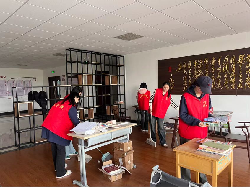 活动前,团支书明确分工,将团员分为清扫组和整理组,确保工作高效有序。活动中,团员们带着扫帚、抹布、垃圾铲等工具,认真清理大厅地面的垃圾碎屑,细致擦拭桌椅、书架和门窗玻璃,对角落卫生死角进行重点清扫。整理组则将散落的考研资料、水杯、文具等物品分类归置,将歪斜的座椅摆放整齐,为备考学子打造井然有序的学习空间。