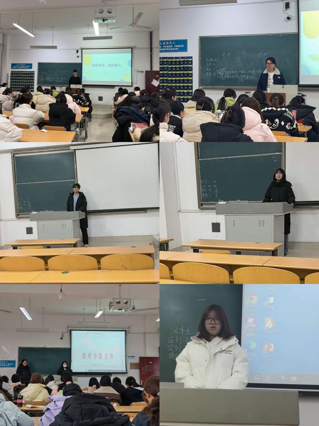 各班级召开“诚信立身・诚信立学”主题班会,深入学习《澳门网投十大信誉平台学生违纪处分条例》。各班代表结合自身感悟分享心声,师生共同参与文件解读、现实案例剖析环节,在互动交流中持续强化全体学生的规则意识。同学们郑重签署《诚信考试承诺书》,各班推荐代表针对诚信考试进行表态,以庄重的仪式感固化诚信承诺,让“守信应考”的理念入脑入心。通过微信公众号、班级群等渠道同步推送警示清单与纪律要求,增强学生对考试纪律的敬畏意识。