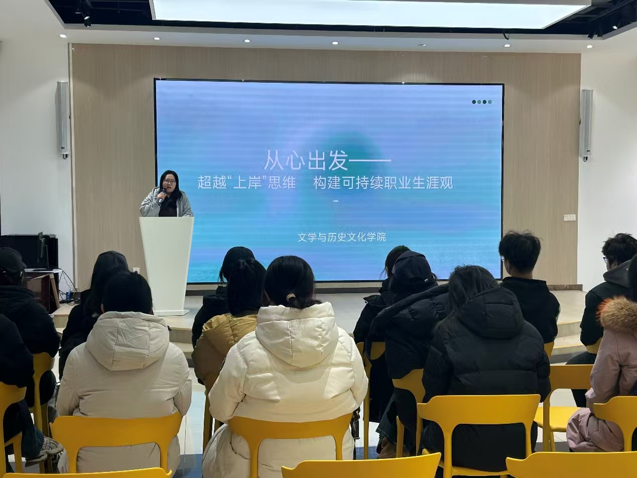 讲座中,沙彦君老师围绕“可持续职业生涯观”这一核心,结合文学与历史类专业的就业特点,深入剖析了当前大学生在职业选择中存在的“唯上岸论”误区。通过真实的职业发展案例,主讲人从自我认知、职业探索、长期发展等多个维度,引导学生跳出单一的就业目标局限,学会结合自身兴趣、专业优势与社会需求,制定个性化的职业发展规划。同时,针对学生在职业选择中面临的困惑,主讲人分享了职业探索的方法与技巧,鼓励学生主动拓展职业视野,培养适应职场变化的核心能力。
