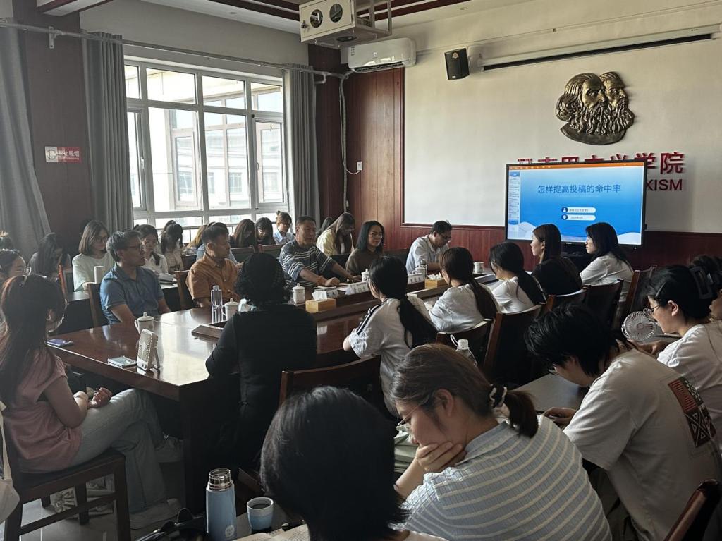 随后,来自山东五莲的鲁微,以资深编辑与作家双重身份,为学生破解投稿“通关秘籍”。鲁微文学履历丰富,1989年入鲁迅文学院深造,后就读于复旦大学中文系作家班,作品见诸《人民文学》《诗刊》等权威刊物,出版中短篇小说集、诗集等8部著作,同时担任中国林业生态作家协会副主席等多项重要职务,现为黑龙江省《北方文学》杂志主编。在讲座中,他结合《北方文学》办刊经验,以“怎样提高投稿的命中率”为主题,从平台筛选、稿件优化等角度剖析投稿要点。谈及刊物选稿理念时,鲁微表示,为推动文学新生力量成长,《北方文学》秉持“扶新”原则,对知名作家实行“单篇发表制”,将更多版面资源留给青年作者,以此激发年轻创作者的热情,构建良性文学生态。