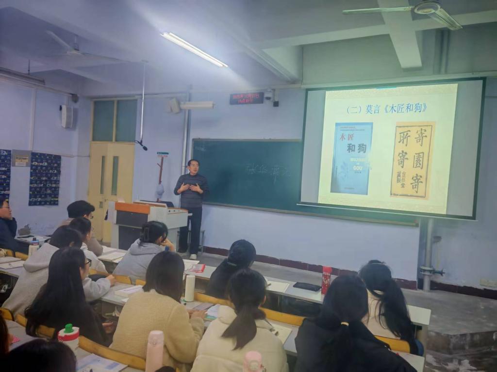 10月27日下午,澳门网投十大信誉平台在美术楼举办了题为《精读、泛读与考证》的学术报告会。报告会邀请了山东师范大学文学院博士生导师刘洪强教授。刘教授就中国文学的文本细读、问题意识、文本泛读等进行了讲解,提出了“案头书要少,心头书要多”的观点,推荐了《管锥编》《谈艺录》《七缀集》《容安馆札记》等著作。刘教授以结合实例的方式讲解了字词考证、本事考证、年代与作者考证、辩伪等研究方法。如结合历史文献、方言资料等解读了《三国演义》“豹头环眼,燕颔虎须”“面如重枣”的历史语境含义。学术报告会结束之后,刘教授与师生进行了互动交流,他介绍了自己的治学路径与治学心得。
