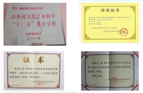学院坚持学术的引领作用,学术氛围浓厚,学术成果丰硕,在山东省同类院校中位居前列。近年来,主持完成国家社科规划课题2项,省部级课题近20项;获山东省社科优秀成果奖二等奖4项,三等奖7项,刘勰文艺评论奖6项,山东省高等学校优秀科研成果二等奖3项,三等奖2项;在国家一级出版社出版学术专著18部,在《文学评论》《外国文学研究》《外国文学评论》《文献》《文艺理论与批评》《天津社会科学》《山东大学学报》《齐鲁学刊》《东岳论丛》《山东社会科学》等省部级以上期刊发表论文近400篇。汉语言文学学科在中国现当代文学思潮、古代文学与文化传承、当代跨文化写作、汉语言文字学、地域文学与文化、民俗与文艺、民俗与生活、电视剧研究等学科方向凝练成极具潜力的研究队伍,并逐步形成特色,具有较大影响。在中国传统文化与地方民俗研究,地方文化生活服务,中小学校本课程的开发、设计与推广等方面服务地方文化建设,取得良好社会效益。