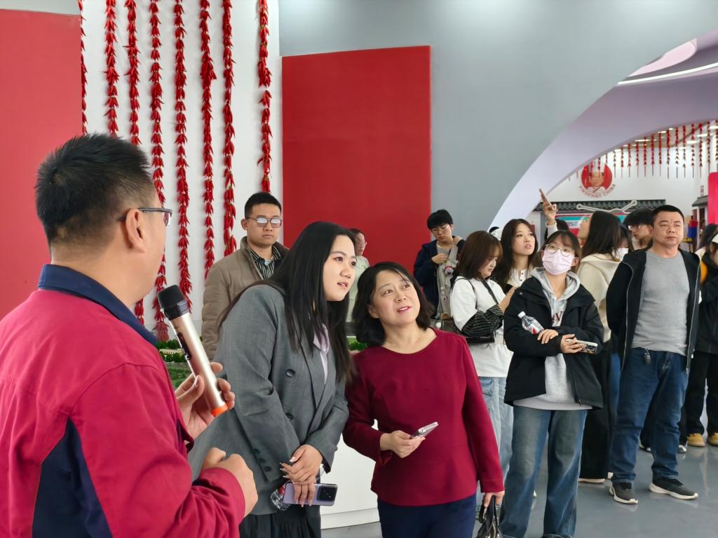 在武城县人社局的引领下,学子们首站抵达中椒英潮辣业发展有限公司。企业负责人详细介绍了辣椒种植、深加工及品牌文化建设情况,学生结合文化产业管理专业优势,就农产品文化IP打造提出建议。随后,学子们前往金信空调设备公司,作为纺织空调领域的佼佼者,金信展示了其先进技术与设备。实地观摩与专业技术人员讲解,让学生们对纺织行业的环境控制、节能技术及智能化应用有了深入理解,对现代制造业的科技水平赞叹不已,立志努力学习,为未来投身此行业打下坚实基础。