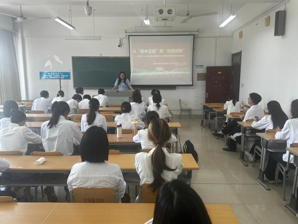 三个党支部书记分别以《从“徙木立信”到“化风成俗”》《党的作风建设永远在路上》《加强新时代廉洁文化建设》为题带领学生党员们集中学习了中央八项规定精神,强调了作风建设、廉洁文化建设的重要性。
