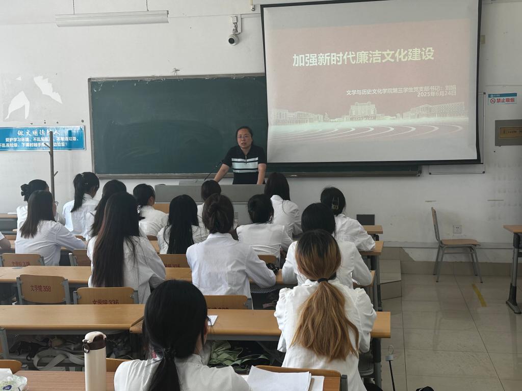 第三学生党支部书记强调了新时代廉洁文化建设的重要性。党的十八大以来,以习近平同志为核心的党中央高度重视廉洁文化建设,将其纳入全面从严治党战略布局,注重从文化和价值观层面推进反腐败斗争,形成浓厚的廉洁文化氛围。希望学生党员充分发挥先锋模范作用,带头形成廉洁自律的个人修养、廉洁齐家的良好家风、廉洁奉公的政治风气和崇廉拒腐的社会风尚。