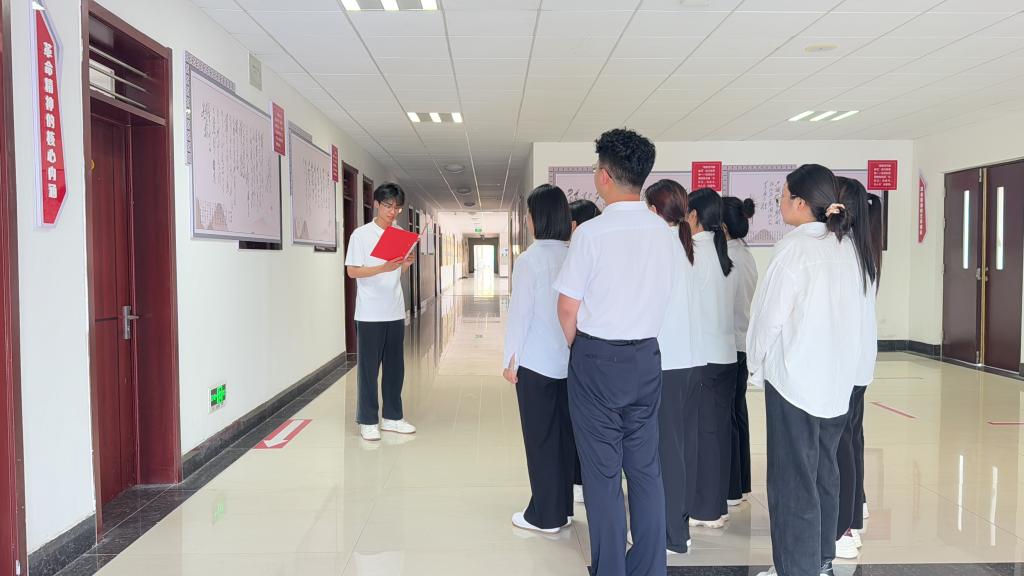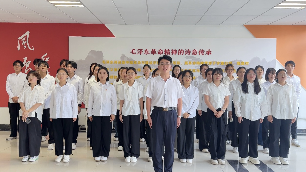 学生党员们以饱满的热情集体朗诵了《沁园春·长沙》和《七律·长征》两首经典诗词。在铿锵有力的朗诵声中,革命英烈们到中流击水,浪遏飞舟的豪迈气概和红军不怕远征难的大无畏精神深深感染着在场的每一位党员。朗诵结束后,一场“行走的党课”随即展开,学生党员代表结合诗词创作时的革命背景,生动讲述了两首诗词背后的党史故事,将诗词中蕴含的革命理想与斗争精神娓娓道来,让红色记忆在新时代焕发新的生命力。